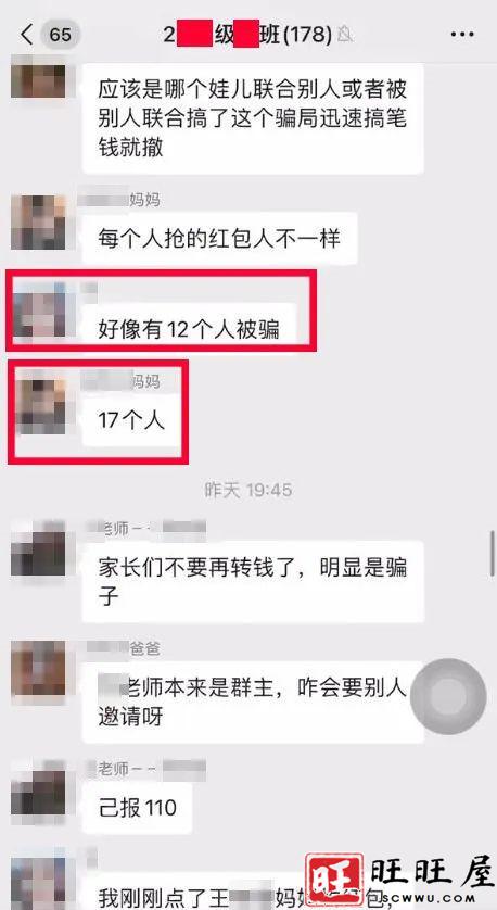 可是,等到其他家长发现这位自称班主任的人并非真正的班主任时,已经晚了,多名学生家长发出去的198元红包,已被骗子领走。 幸运的是,意识到异常的群众及时私聊了真正的班主任,才得以揭穿了该骗局,真正的班主任来了后,立即将骗子踢出了微信群,并提醒家长们不要发红包,以防再次上当受骗。