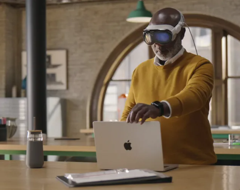 Vision Pro 看起来像一副滑雪镜,通过眼睛、手势和语音控制。该头显有一个玻璃前面板和一个铝制框架,包含传感器、摄像头、显示屏和用风扇冷却的计算组件。耳机面罩和表带采用布衬和模块化设计,苹果表示它们可以弯曲以适应各种脸型和头型。带螺纹的头带可以更换不同尺寸和款式,苹果跟蔡司合作,生产的处方镜片可以磁性地附着在显示屏上,便于近视人士使用头显。有一个可提供2 小时续航的外部电池,可以通过“柔软的编织电缆”连接,因此使用时可以放入口袋。苹果称其显示屏将前所未有的清晰,采用 micro-OLED 屏幕,拥有 2300 万像素,单眼分辨率超过 4K。